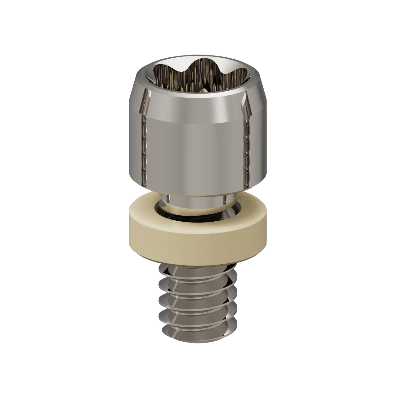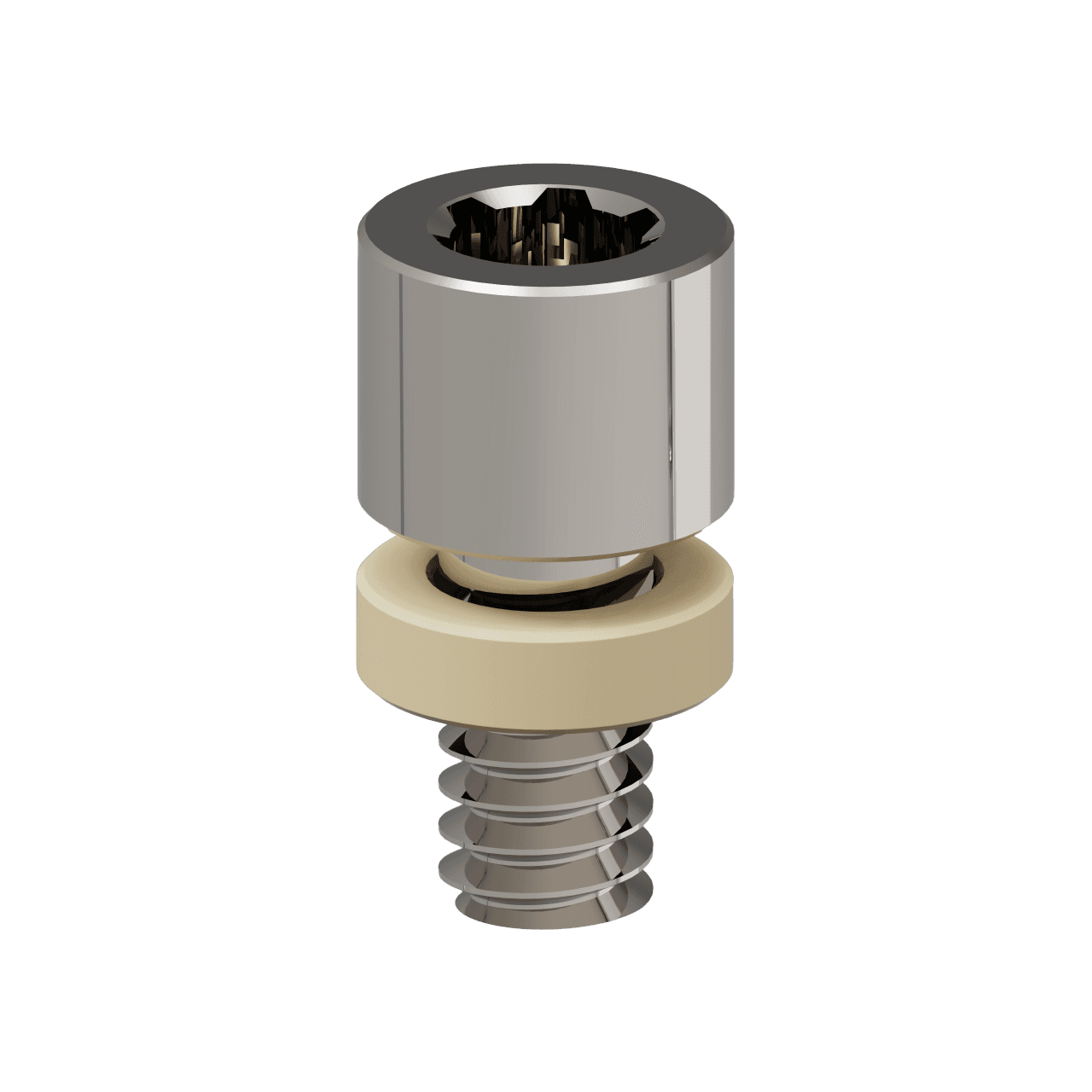 Más pasividad. Menos tensión. Arandela de PEEK 0,30 mm de espesor. Diseñada para aportar mayor superficie de apoyo al tornillo y actuar como tope, evitando su aflojamiento. Reduce la filtración de líquidos en la conexión. Permite que el tornillo se adapte a la arandela y no directamente al circonio, protegiendo la estructura.